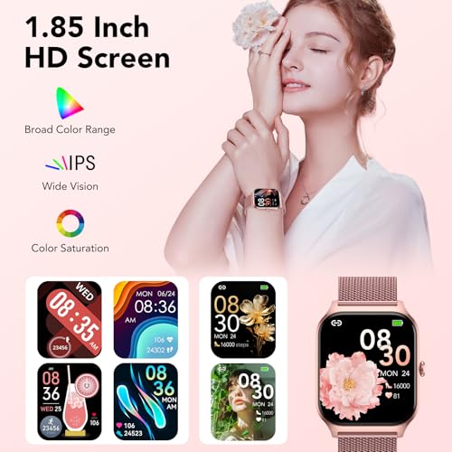 CASCHO Smart Watches for Women, 1.85" HD Smartwatch with 120+ Sports Modes/Heart Rate/Sleep Monitor, IP68 Waterproof Fitness Tracker with Bluetooth Calling/Voice Control for Android iOS, Rose Gold